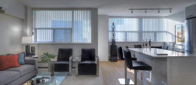 Tour our newly renovated 1 bedroom suites which now includes a new designer kitchen with caesarstone counters and stainless steel appliances wide plank flooring and led lighting.