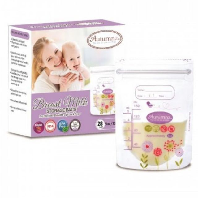 The bags which hold up to 6 ounces are sterilized and ready to go and the double zipper prevents messy leaks.